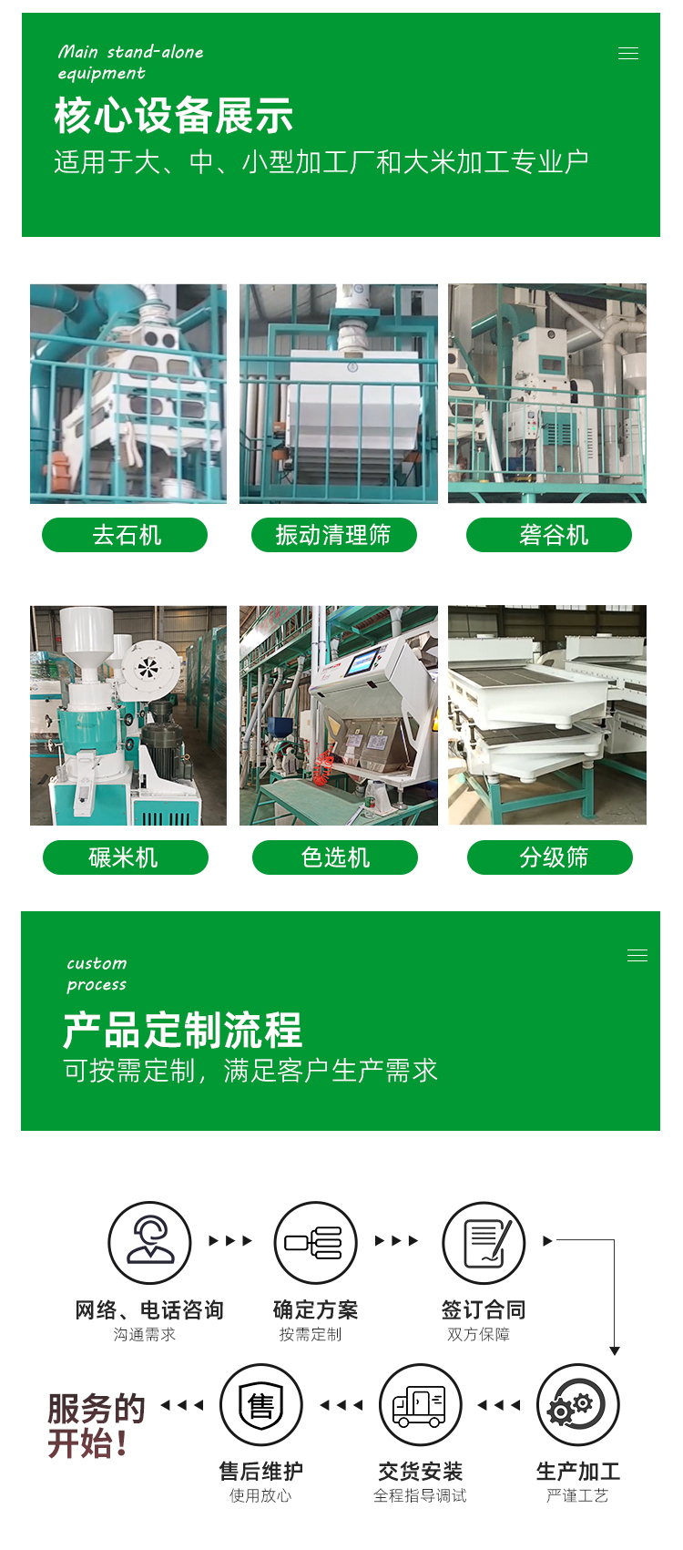 本設備廣泛適用于城鎮、農村大、中、小型大米加工廠和大米加工專業戶。