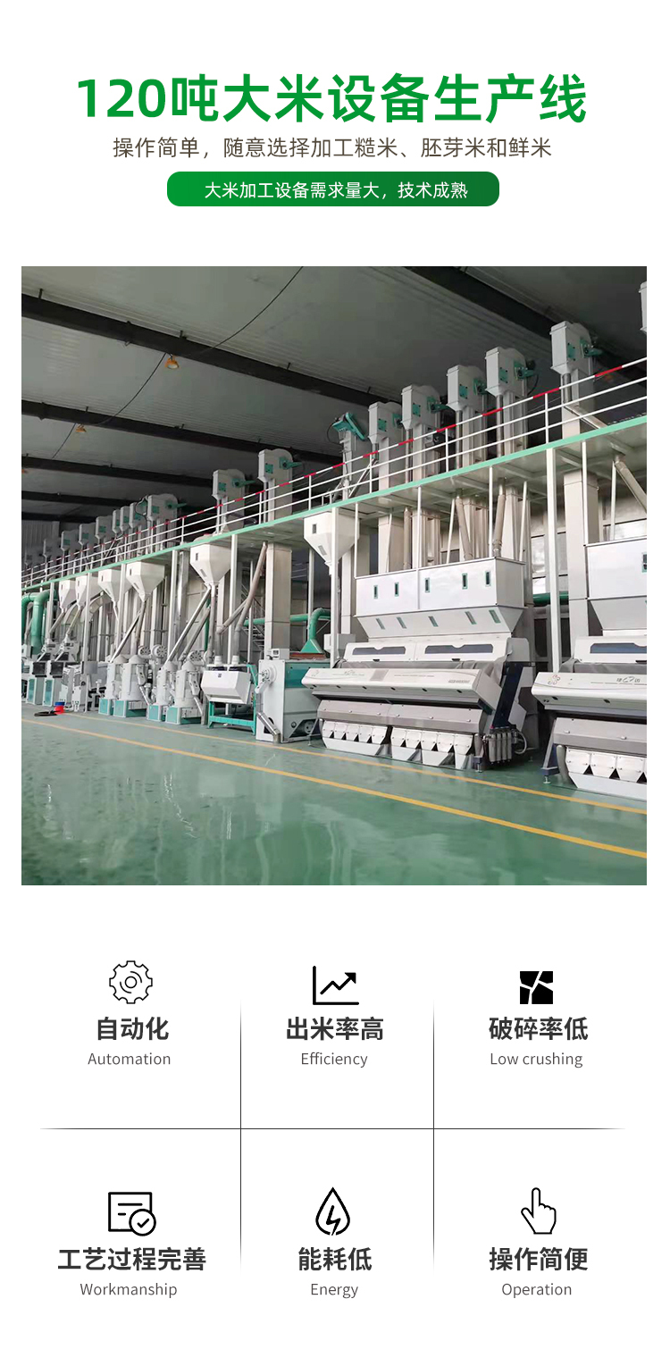 2、設備先進,本成套設備配備了我公司的**清理設備、**脫殼設備、新型碾磨設備以及大米**分級設備。這些新技術與設備的應用,使得設備具有出米率高,碎米率低且成品米金燦明亮。